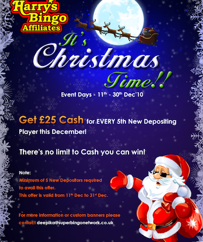 Harry’s Bingo Christmas Promos Promotional Bingo Get 25 Cash for EVERY 5th New deposit that any player deposits this March. This is hard to beat. Plus, there is no limit to Cash you can win. Good Luck!!! Related posts: Jackpot Joy Christmas Bingo Promotions Ladbrokes Bingo New Promos Tiki Bingo Bingo Magix Games Bingo Charm Prizes New Billy Bingo Whopping 25 Free Glorious Bingo UK hasta $1600 MJUEGAhasta $650 MJUEGAhasta €190 MJUEGAhasta €90 MJUEGA
