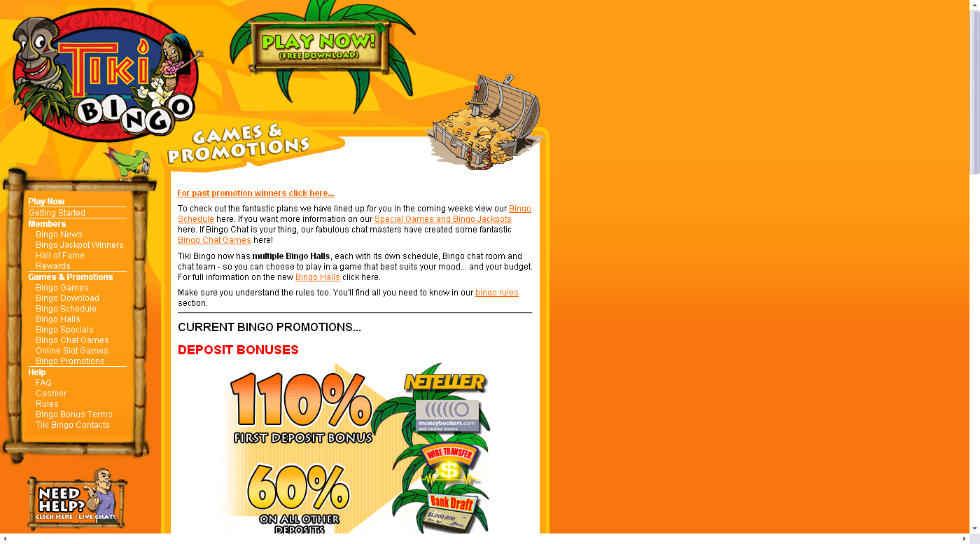 Withdrawal request are processed within four days of the initial request. Believe it or not, there is NO LIMIT to what a player can withdraw but the maximum is $9,000 which will be paid to you once a month. So if you are interested in Tiki and like to play bingo Tiki Bingo is the place to be. So what are you waiting for give Tiki Bingo a try and then take advantage of the huge payouts and NO LIMIT withdrawals.